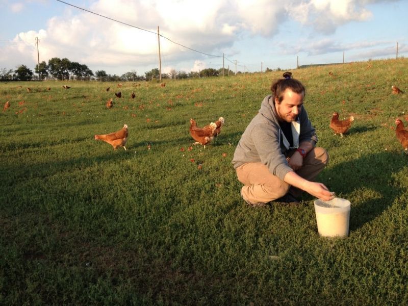 In the picture we see him at work with a group of turkeys in one of our Organic Farms.