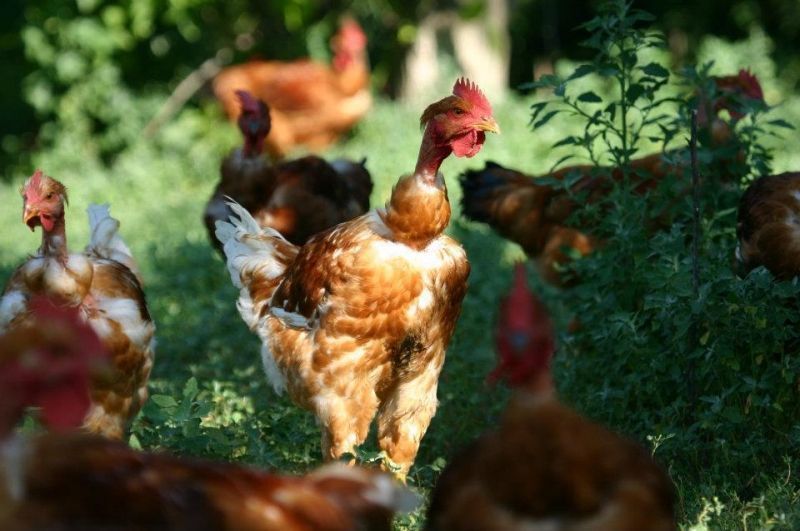 10 square meters per chicken grazing bring about 3 kg. of dry matter.