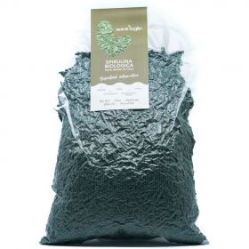 This spirulina has the shape of small broken spaghetti is crunchy and the taste is reminiscent of pumpkin seeds.
