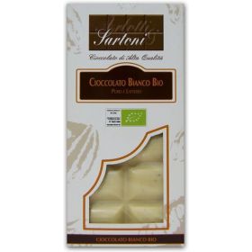 PURO E LATTOSO. Il Cioccolato Bianco Bio di Arlotti e Sartoni esalta la genuinià dello zucchero di canna bio e del latte in polvere bio; ma soprattutto la qualità del Burro di Cacao che è la parte nobile del frutto del cacao che diventa protagonista.