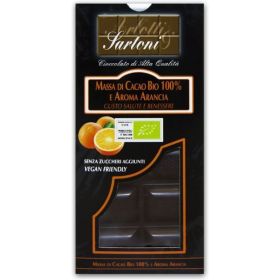 GUSTO BENESSERE E SALUTE. Questo è uno dei prodotti di punta della nostra produzione. Massa di Cacao Bio proveniente prevalentemente dalla Repubblica Dominicana emulsionata con Burro di Cacao Bio. Questa tavoletta non ha zuccheri aggiunti e non è per tutti. L’aggiunta dell’Aroma Arancia Bio apporta alla tavoletta un gusto più gradevole e rappresenta una valida alternativa alla tavoletta 100% estrema. I benefici ormai acclarati del Cioccolato ne fanno di questa tavoletta un prati e piacevole alleato per la salute e il benessere.