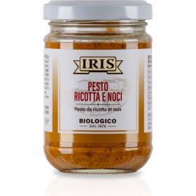 Olio di semi di girasole, passata di pomodoro, ricotta di latte vaccino 12% ,doppio concentrato di pomodoro, noci 6,6% , anacardi, basilico, succo di limone, sale marino , aglio. Può contenere sedano e frutta a guscio