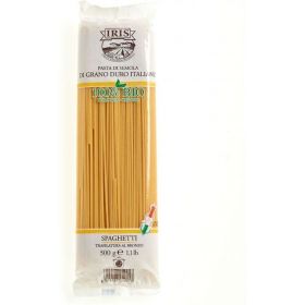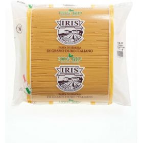 Questo tipo di Spaghetti ha la particolarità di raccogliere meglio il sugo. Sono il formato di pasta che più ci contraddistingue nel mondo. La forma e la misura rendono gli spaghetti un formato di pasta particolarmente versatile. Gli spaghetti di semola IRIS, sono prodotti con una miscela di grani accuratamente scelta ad ogni raccolto. I grani, che sono italiani, provengono direttamente dalla nostra filiera.
