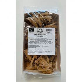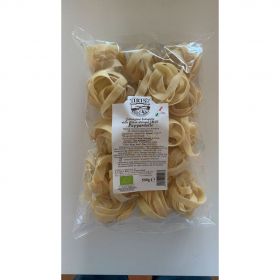Pasta di farro semi integrale biologica trafilata al bronzo. Le Tagliatelle di farro, solo della varietà Triticum (quello che fa la pasta buona, che tiene la cottura). dal campo alla forchetta garantiamo una pasta biologica di alta qualità. I nostri MASTRI PASTAI, dicono che la nostra MATERIA PRIMA È VIVA... il farro è più difficile da lavorare perché sempre diverso, dipende dalla stagione.. così dicono. Il farro è un cereale antico, adatto anche a chi fa fatica a digerire la pasta tradizionale. Quello coltivato dagli agricoltori di filiera IRIS è il più buono per fare la pasta. Potete gustarlo con tutti i tipi di sugo, speciali con il ragù classico.