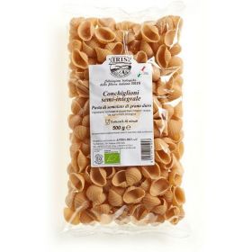 I conchiglioni di semolato (semi-integrale) IRIS, simili alla semola ma FONTE DI FIBRE. Il grano duro viene coltivato nella filiera agricola biologica italiana IRIS, dal campo alla forchetta. Garantiamo una pasta biologica di alta qualità. I nostri MASTRI PASTAI, dicono che la nostra MATERIA PRIMA È VIVA... con profumo intenso La pasta semolato (semi-integrale) IRIS fa bene all'intestino, ci aiuta per una dieta equilibrata.