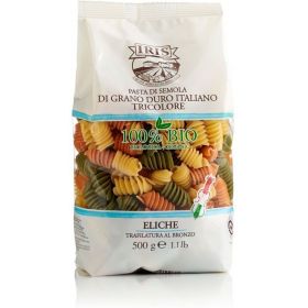 Le eliche tricolore IRIS sono prodotte con trafile particolari che esaltano gusto e qualità, alcune arricchite con verdure biologiche. I grani duri utilizzati per produrre le eliche tricolore semola, sono coltivati direttamente all’interno della filiera IRIS. La trafilatura al bronzo delle eliche tricolore IRIS, consente di ottenere una pasta gradevolmente più ruvida e porosa, ideale per assorbire ed esaltare i sughi.