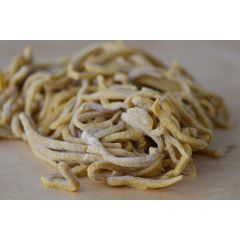 Tagliatelle fatte a mano Ingredienti uova fresche pastorizzate biologiche da galline allevate a terra, farina di grano tenero Molino Paolo Mariani, grani 100% italiani