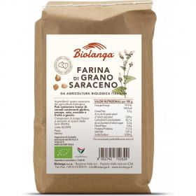 Farina integrale di grano saraceno biologico, ottenuta da molituta a pietra, confezionata in sacchi da 5 Kg