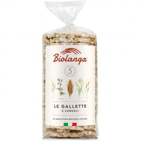 Gallette ai 5 cereali integrali biologici: farro, grano saraceno, mais, orzo e riso. Lavorate a chicco intero, in confezione da 100 g