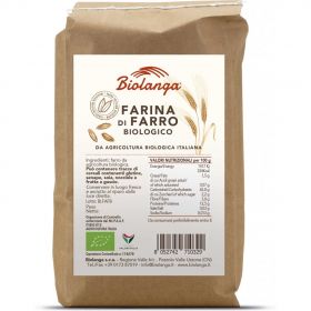 Farina semintegrale di farro biologico, ottenuta da molitura a pietra, confezionata in sacchi da 5 Kg.