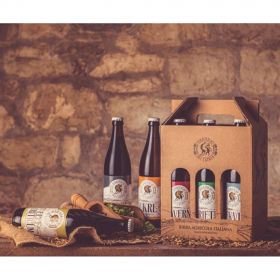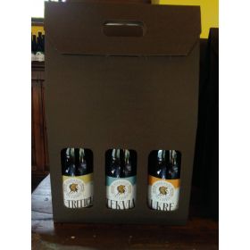 Assortimento con le birre da 0, 75l più storiche del birrificio, Bionda-Ambrata-Rossa: 1 Ukre, 1 Tekvia, 1 Klavernia.
