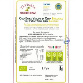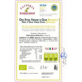 Olio extravergine d'oliva biologico ottenuto soltanto da impianti di propria conduzione, molito a freddo e sottoposto ai disciplinari sulla coltivazione biologica. Il prodotto deriva da olive di coltivazione propria ed è esente da additivi di qualsiasi natura (Bioagricert: IT BIO 007 B10J) e sull'IGP SICILIA (IRVO). Zona di produzione: C.da Mandre Rosse, Libertinia (Ramacca, CT).