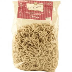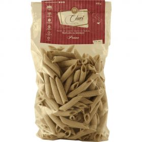 Pasta secca trafilata al bronzo. Impasto di farina e acqua e trafilatura al bronzo in trafile di diversi formati. Essiccazione lenta naturale a basse temperature in forni ventilati.