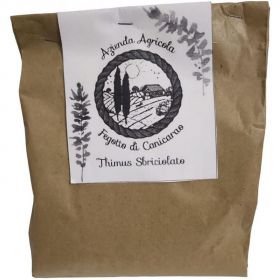 Il timo è prodotto e confezionato da Az. Agr. Fegotto di Canicarao di Gabriele Proto. Il timo raccolto viene lavato, tagliato ed essiccato a temperatura inferiore a 40 gradi per conservarne tutte le caratteristiche nutritive e organolettiche. Successivamente viene riunito in mazzetti e confezionato. Il prodotto è esente da additivi di qualsiasi natura.