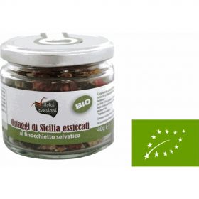 Sale marino, buccia di arancia essiccata* 5%, origano* 5%, rosmarino* 2,5%, salvia* 2,5%, finocchietto* 2,5%, basilico*, issopo*.*da agricoltura biologica