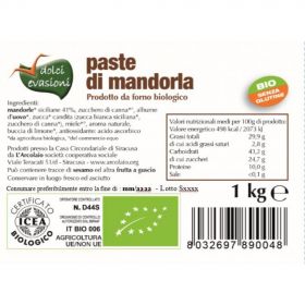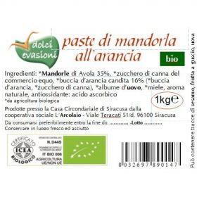 Zucchero di canna*°, mandorle di Sicilia* 29,3%, mandorle amare* 3,3%. *da agricoltura biologica, °ingrediente del commercio equo e solidale.