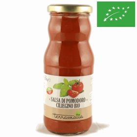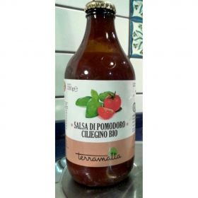Salsa di pomodoro ciliegino BIO prodotta e confezionata per TERRAMATTA S.COOP.SOC. VIA TURATI, 65 - 97100 RAGUSA nello stabilimento di C.DA COFFA - CHIARAMONTE GULFI(RG). Prodotto BIO.