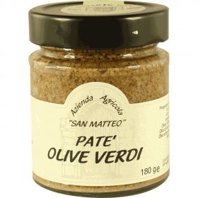 Olive verdi varietà Nocellara dell’Etna conservate in salamoia, successivamente sgocciolate, denocciolate e tritate. Confezionate in vaso di vetro da 190g con olio Evo e sottoposti a successiva pastorizzazione. Le materie prime sono di origine aziendale. Il processo di trasformazione in patè rende l’oliva utilizzabile in maniera versatile anche come condimento in crema per le vostre ricette.