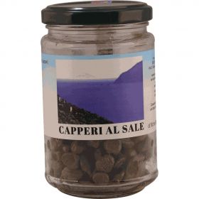 Prodotto non bio ottenuto dalla raccolta dei capperi, immediatamente salati, trasportati e conservati in bidoni per alimenti e dopo una quarantina di giorni confezionati in barattolo di vetro.
