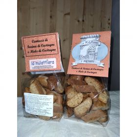 Biscotti preparati con i nostri prodotti, farina di castagne, olio di oliva e miele di castagno, preparato e confezionato per noi, dal biscottificio Mago Farina.