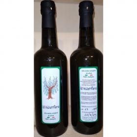 Olio extra vergine di Oliva, da olive provenienti dal nostro oliveto, sito in collina della Versilia dove si trovano diverse cultivar locali, la frangitura a freddo garantisce le caratteristiche organolettiche migliori all'olio