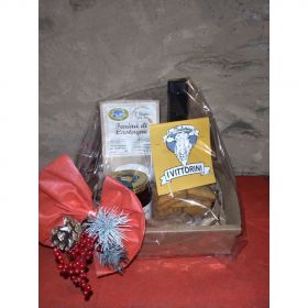 Pacco contenente: olio evo 250g + biscotti Metati + Biscotti Vittorini + Miele 500g + farina grani antichi 1Kg + farina di castagne 500g