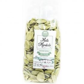 Semola di grano duro* 100% Pugliese Senatore Cappelli integrale, Farina di Mandorle sgusciate* 5%, Spinaci*, Acqua. (*da agricoltura biologica) - Non contiene conservanti, coloranti, additivi o prodotti estranei alla composizione dichiarata