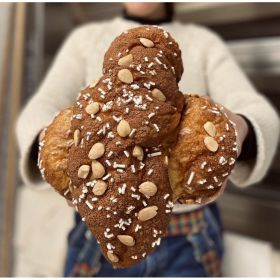 INGREDIENTI: FARINA TIPO 1 BIO, FARINA TIPO 0 BIO, LATTE, acqua, LIEVITO MADRE, TUORLO D'UOVO, zucchero, BURRO, olio evo, sale, LIEVITO DI BIRRA, MALTO.