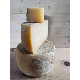 Organic pecorino aged between walnut leaves - half cheese 0, approximately 75Kg. Price per kilo amounts to € 18.72. Indicative price, depends on the actual weight.