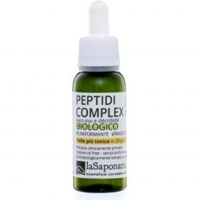 Peptidi Complex con Sacha Inchi è un Attivo Puro ideale da usare come siero viso per rassodare e tonificare la pelle del viso e del décolleté. Considerati grandiosi alleati anti-age della pelle, i peptidi sono brevi sequenze di amminoacidi la cui principale caratteristica è quella di stimolare la produzione di collagene ed elastina, conferendo alla pelle tono ed elasticità. Peptidi Complex contiene un esapeptide (6 amminoacidi) di origine vegetale derivato da fermentazione e l’estratto – ricco in peptidi - di Sacha Inchi, una pianta perenne del Sud America, conosciuta e utilizzata per le sue straordinarie proprietà già dagli Inca. La combinazione di questi due ingredienti agisce in modo efficace e completo sul ringiovanimento del viso e del décolleté: migliorando il tono della pelle, contrastando il naturale cedimento cutaneo e combattendo i segni del tempo come rughe, perdita di elasticità e macchie. La pelle di viso e seno apparirà più uniforme, compatta e rassodata.