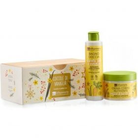 Bagnodoccia: Aqua, Aloe Barbadensis Leaf Juice*, Ammonium Lauryl Sulfate, Coco-Glucoside, Melissa Officinalis Leaf Water*, Glyceryl Oleate, Cocamidopropyl Betaine, Parfum**, Glycerin, Malva Sylvestris Flower/Leaf Extract*, Zingiber Officinale Rhizome Extract, Vanilla Planifolia Bean Extract, Daucus Carota Sativa Root Extract*, Sodium Benzoate, Benzyl Alcohol, Sodium Chloride, Potassium Sorbate, Tocopherol, Helianthus Annuus Seed Oil, Sodium Phytate, Sodium Dehydroacetate, Saccharide Isomerate, Pogostemon Cablin Oil, Citric Acid, Sodium Citrate, Limonene (*ingredienti da agricoltura biologica 21%. Ingredienti di origine naturale 98%. **Profumo di origine naturale). Crema corpo: Aqua, Butyrospermum Parkii Butter*, Cetearyl Alcohol, Cocos Nucifera Oil*, Helianthus Annuus Seed Oil*, Caprylic/Capric Triglyceride, Aloe Barbadensis Leaf Juice*, Glycerin, Coco-Caprylate/Caprate, Glyceryl Stearate Citrate, Theobroma Cacao Seed Butter*, Glyceryl Caprylate, Daucus Carota Sativa Root Extract*, Tocopherol, Iris Pallida Root Extract*, Vanilla Planifolia Bean Extract, Parfum**, Benzyl Alcohol, Propanediol, Benzoic Acid, Xanthan Gum, Lecithin, Limonene, Sodium Phytate, Ascorbyl Palmitate, Sodium Benzoate, Potassium Sorbate, Betaine, Pogostemon Cablin Oil, Vanillin, Geraniol, Citric Acid, Benzaldehyde, Eugenol (*ingredienti da agricoltura biologica 24%. Ingredienti di origine naturale 99%. ** Profumo di origine naturale).