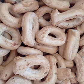 FARINA DI GRANO, OLIO DI OLIVA (10%), OLIO EXTRAVERGINE DI OLIVA (8%), SALE MARINO, VINO BIANCO, ANTIOSSIDANTE ed ESTRATTO DI ROSMARINO