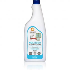 Household cleaner suitable for different types of washable surfaces. Tiles, bathroom fixtures, terracotta floors, varnished parquet, kitchen tops, stoves and doors. Bioplastic bottle