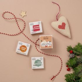 "Fatto a mano e donato con il cuore" è un tris di cosmetici solidi in mini size da 15 g, edizione limitata per Natale 2025, pensato per chi ama la sostenibilità plastic free e i prodotti concentrati, composto da: