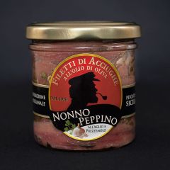Acciughe pescate nel mare di Sicilia con reti da circuizione e lavorate artigianalmente con sale marino integrale.