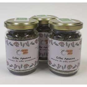Profumata miscela di erbe aromatiche, preparata solo con erbe coltivate e raccolte da noi nei nostri campi a La Perla, tra le Apuane ed il Mare.