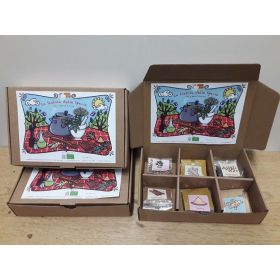 Confezione con sei assaggi: Rooibos dal Sudafrica, Gunpowder verde dalla Cina , il semiossidato Oolong, il Darjeeling indiano, Tè nero Earl Grey aromatizzato al bergamotto e Tè verde China Jasmine.