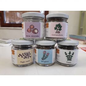 CONFEZIONE CON 6 SPEZIE CERTIFICATE BIOLOGICHE IN SCATOLA DI CARTONE (25 x 17CM) PESO NETTO 120 GR