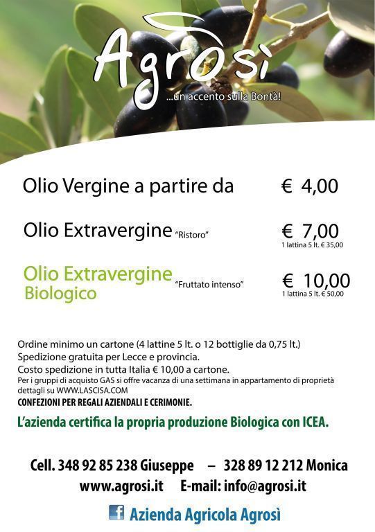 Agrosì Azienda Agricola autocertifica le informazioni riportate qui sopra. E-circles al momento non ha ancora verificato la veridicità di quanto pubblicato in questa sezione.