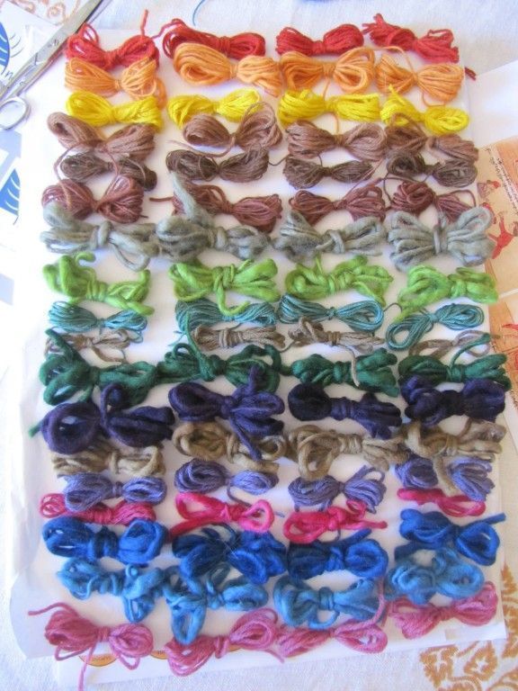 Laboratorio di tintura naturale della lana. Matasse in lana abruzzese da 100 g colorate con pigmenti naturali