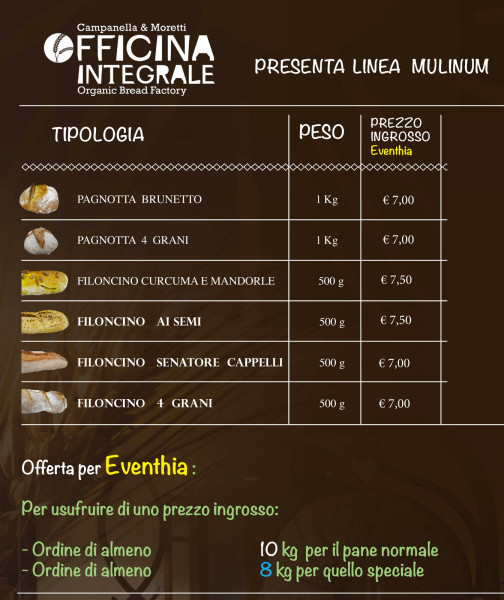 Il pane che vendiamo al dettaglio parte dai 10 euro al kg ma per i gruppi G.A.S. che fanno un ordine cumulativo di 10 kg per quello normale e 8 kg per quello speciale riusciamo a far pagare un prezzo all'ingrosso.