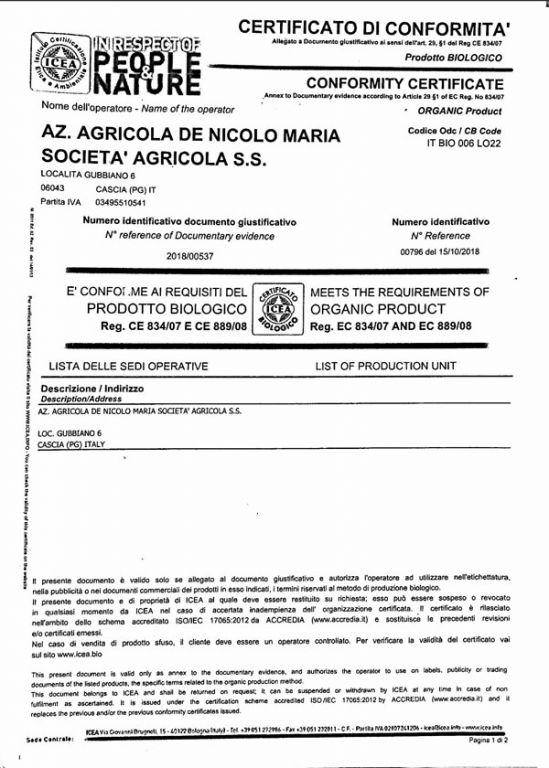 L’Azienda Agricola Biologica De Nicolo Maria vede posare la sua prima pietra nel 1987.
