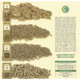Pasta secca integrale da semola integrale di grano duro Senatore cappelli, trafilata ruvida al bronzo ed a lenta essiccazione.