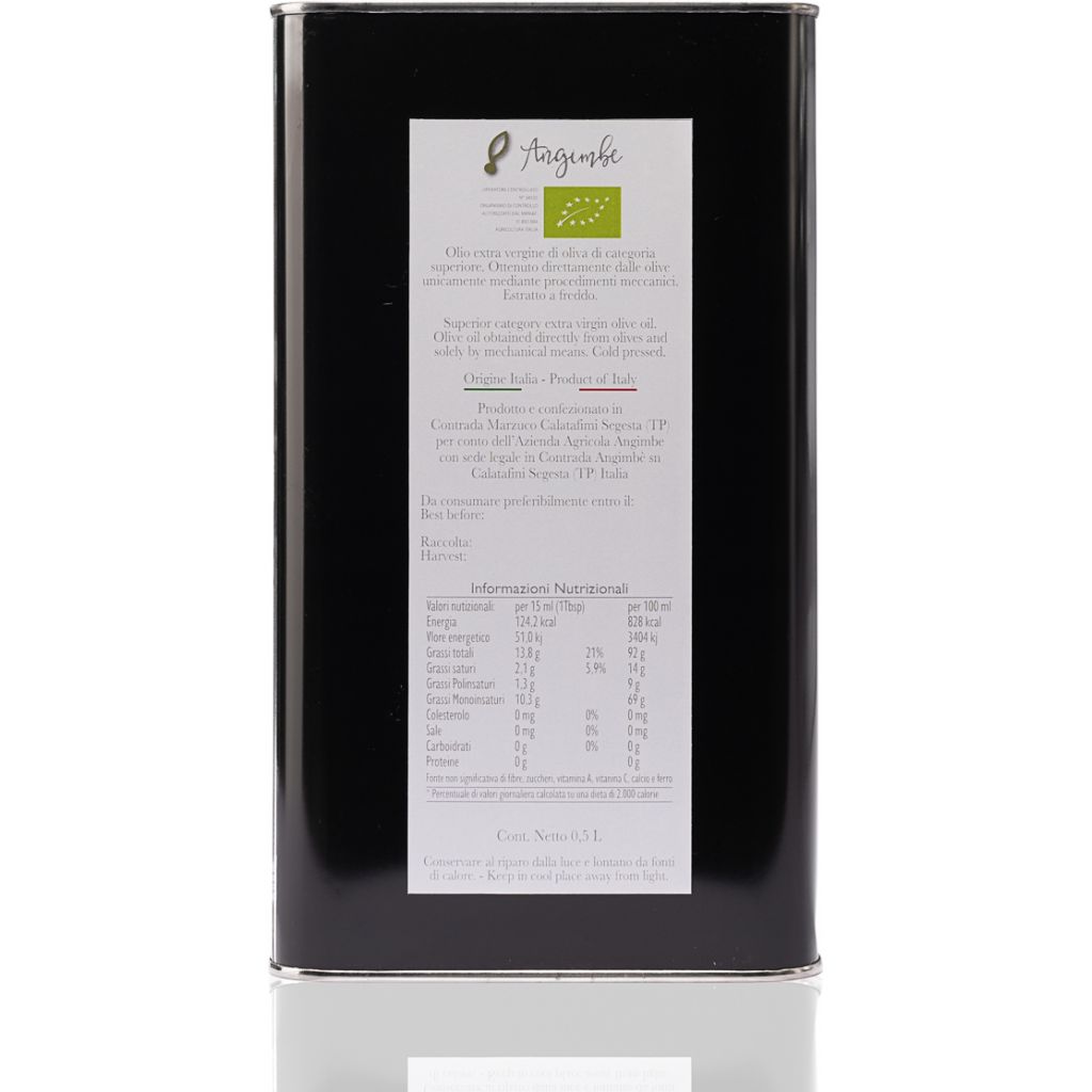Olio Angimbe NATURES BIO è ottenuto da olive selezionate, raccolte a mano nell’oliveto di Calatafimi Segesta. Viene molito entro la giornata e le olive vengono selezionate prima della completa maturazione quando c’è ancora la prevalenza del verde sul violastro. Viene poi stoccato in dei recipienti in acciaio a temperatura controllata ed in assenza di ossigeno per mantenerlo con tutte le sue proprietà e lasciarle immutate fino a quando arriva al consumatore finale