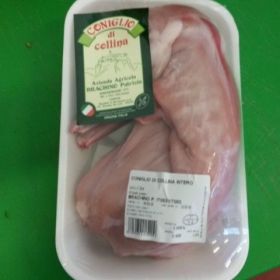 Coniglio collina metà. Peso 0, 55 / 0, 65 Kg circa. Confezionamento sottovuoto.