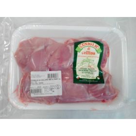Bistecchine di pollo: sovracoscia intera disossata e arrotolata. Ottima in padella col prosciutto, oppure spezzettare da fare come spezzatino. Peso 0, 40 / 0, 50 Kg circa. Confezionamento a skin.