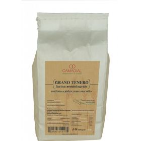 Confezione da 1Kg La farina semi-integrale, contiene quasi tutte le parti del chicco di frumento. Molitura a pietra come una volta.