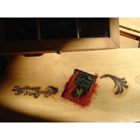 Bustina di carta confezionata a mano da 0, 1g di zafferano biologico in polvere.