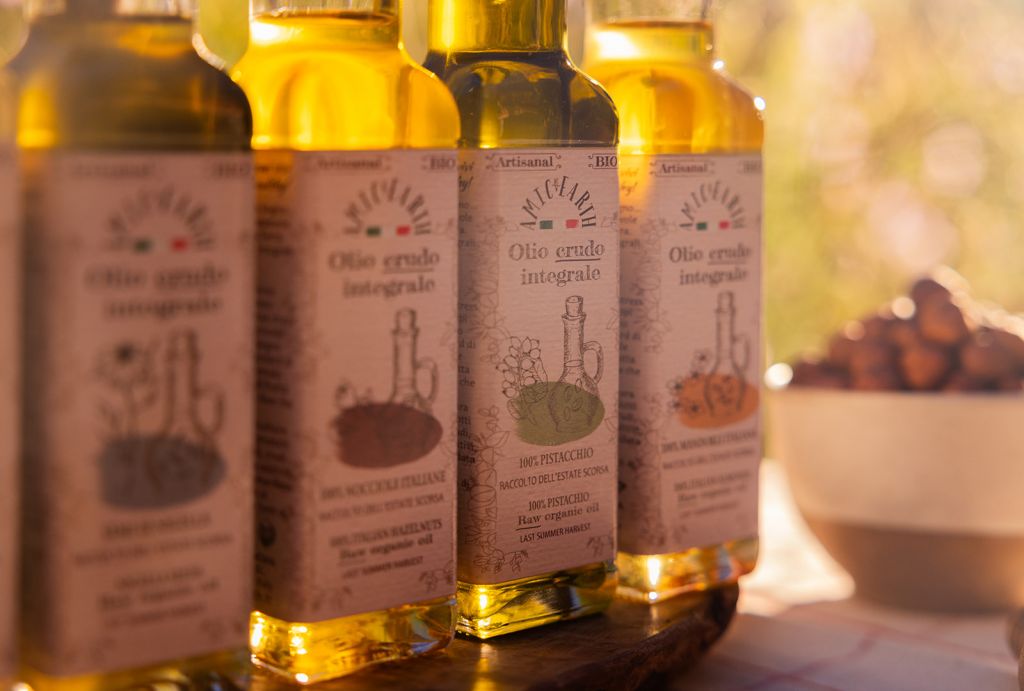 Olio estratto a freddo da noci e semi oleosi esclusivamente biologici;