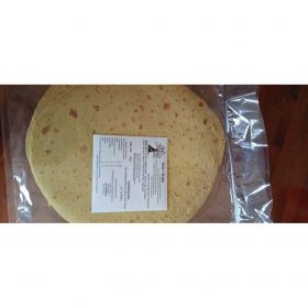 Piadina a base di olio evo con l'aggiunta di curcuma, fatta senza conservati con farine macinate a pietra di grani antichi.